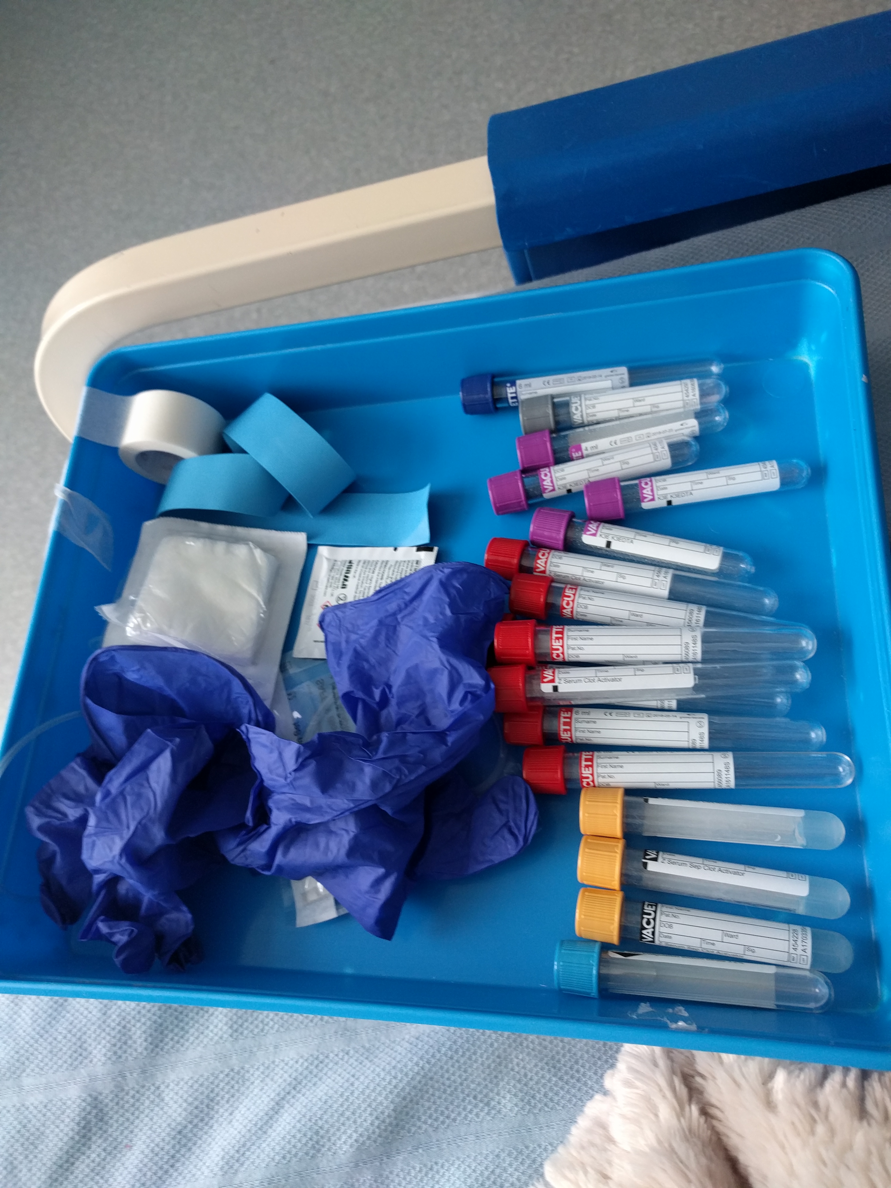 Bloods taken for transplant assessment – about 100mls taken.