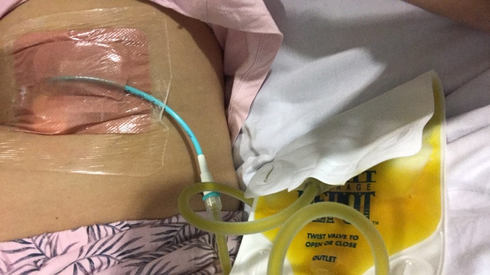 They decided to insert a CT guided drain to drain the fluid. This drain stayed in until after I was discharged and removed on 9th April.